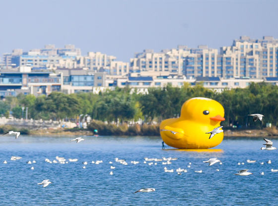 銀川老城秋日圖景 紅嘴鷗如期赴約